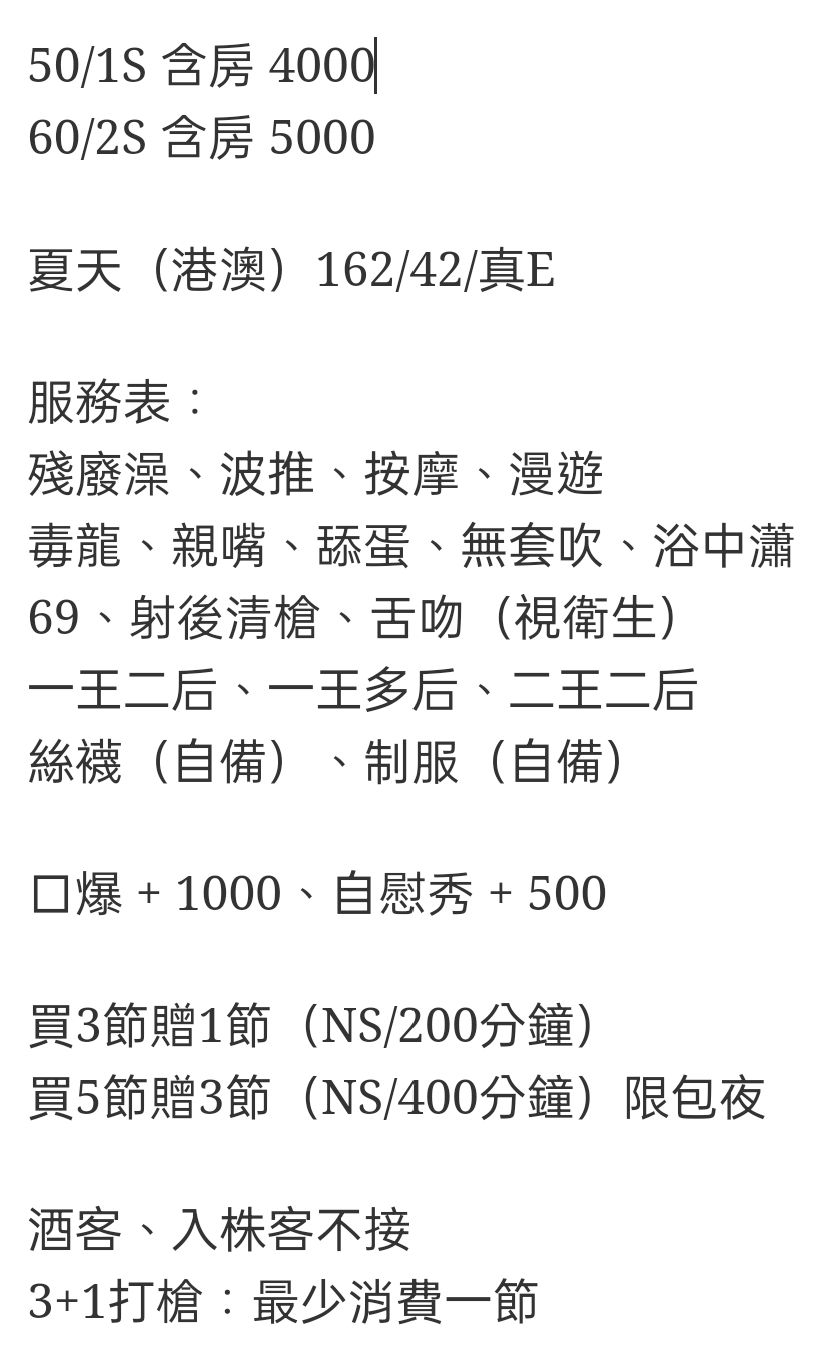🇨🇳台中北屯港澳妹 夏天 http://verytai.net/wp-content/uploads/2024/12/LINE_MOVIE_1735439522570.mp4 50/1S 含房 4000 60/2S 含房 5000 夏天(港澳)162/42/真E 服務表: 殘廢澡、波推、按摩、漫遊 毒龍、親嘴、舔蛋、無套吹、浴中瀟 69、射後清槍、舌吻(視衛生) 一王二后、一王多后、二王二后 絲襪(自備)、制服(自備) 口爆 + 1000、自慰秀 + 500 買3節贈1節(NS/200分鐘) 買5節贈3節(NS/400分鐘)限包夜 酒客、入株客不接 3+1打槍:最少消費一節 相關商品 Quick View Quick View 🇨🇳台中北區港澳妹 七月 Quick View Quick View 🇯🇵台中西屯櫻花妹 琉璃 Quick View Quick View 🇰🇷台中北區泡菜妹 智優