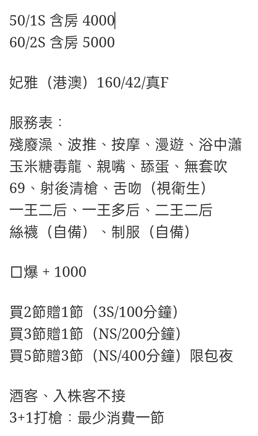 🇨🇳台中西屯港澳妹 妃雅 http://verytai.net/wp-content/uploads/2025/10/LINE_MOVIE_1761005925690.mp4 50/1S 含房 4000 60/2S 含房 5000 妃雅(港澳)160/42/真F 服務表: 殘廢澡、波推、按摩、漫遊、浴中瀟 玉米糖毒龍、親嘴、舔蛋、無套吹 69、射後清槍、舌吻(視衛生) 一王二后、一王多后、二王二后 絲襪(自備)、制服(自備) 口爆 + 1000 買2節贈1節(3S/100分鐘) 買3節贈1節(NS/200分鐘) 買5節贈3節(NS/400分鐘)限包夜 酒客、入株客不接 3+1打槍:最少消費一節 相關商品 Quick View Quick View 🇻🇳台中西屯越妹 夢子 Quick View Quick View ??台中西屯日本AV 杉浦花音 Quick View Quick View 🇰🇷台中西屯泡菜妹 韓苓媛