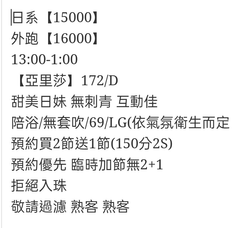 🇯🇵台中西屯櫻花妹 亞里莎 http://verytai.net/wp-content/uploads/2025/08/1756182167249.mp4 日系【15000】 外跑【16000】 13:00-1:00 【亞里莎】172/D 甜美日妹 無刺青 互動佳 陪浴/無套吹/69/LG(依氣氛衛生而定 預約買2節送1節(150分2S) 預約優先 臨時加節無2+1 拒絕入珠 敬請過濾 熟客 熟客 相關商品 Quick View Quick View 🇻🇳台中西屯越妹 芝媛 Quick View Quick View 🇯🇵台中西屯櫻花妹 香奈乎 Quick View Quick View 🇲🇾台中西屯馬來妹 小虎牙
