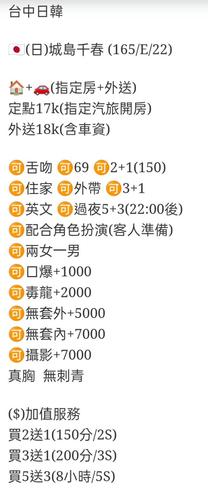 🉑️無套外+5000