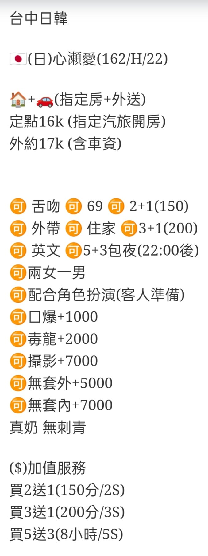 🉑️無套外+5000