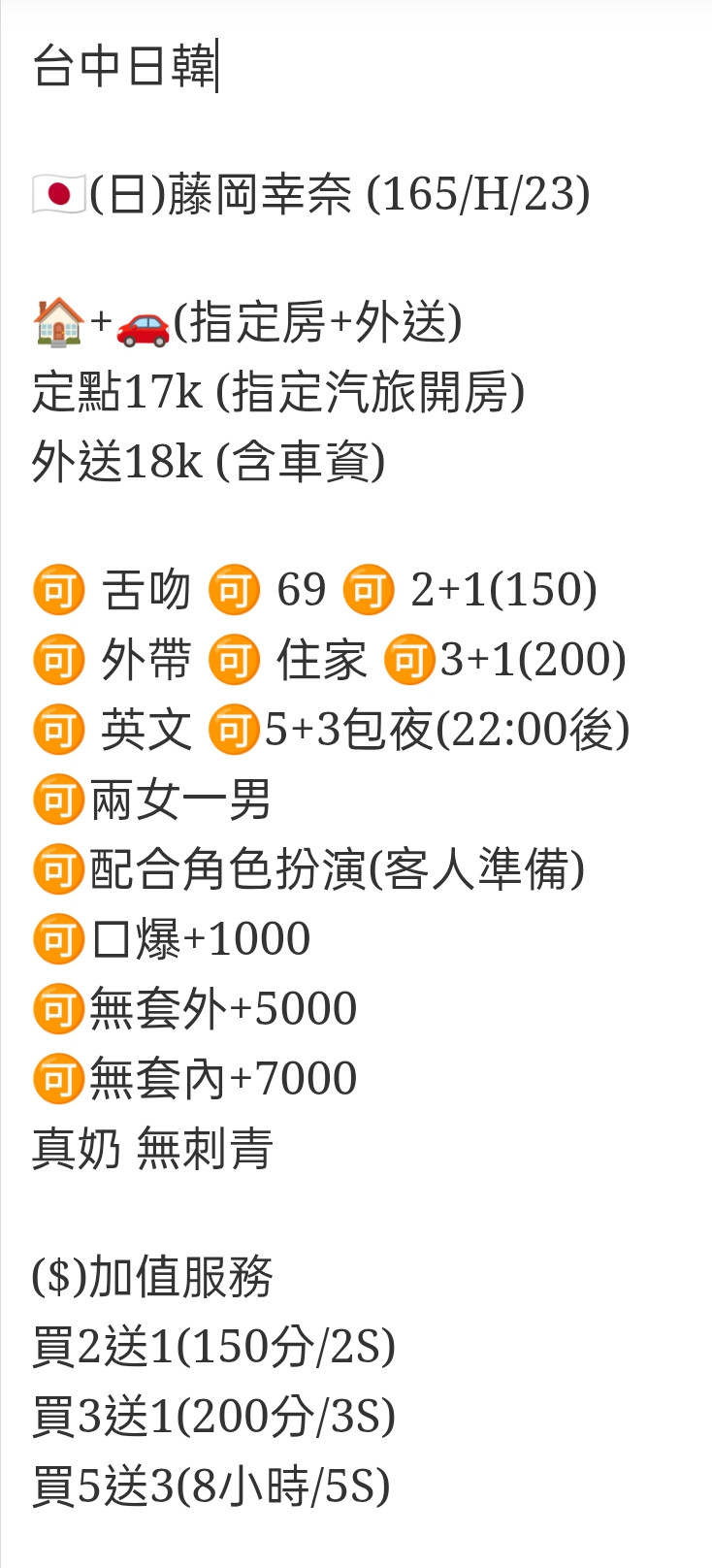 🉑️無套外+5000