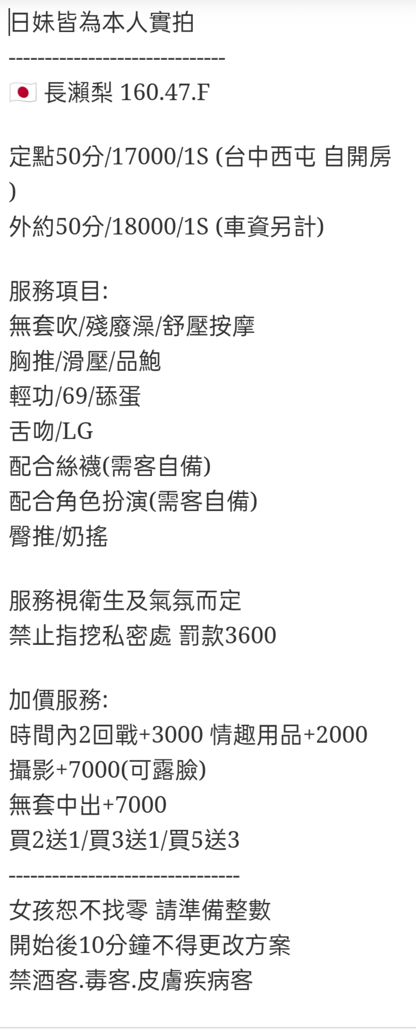 定點50分/17000/1S (台中西屯 自開房 )