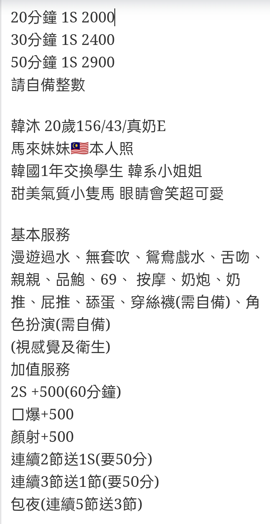 漫遊過水、無套吹、鴛鴦戲水、舌吻、親親、品鮑、69、 按摩、奶炮、奶推、屁推、舔蛋、穿絲襪(需自備)、角色扮演(需自備)
