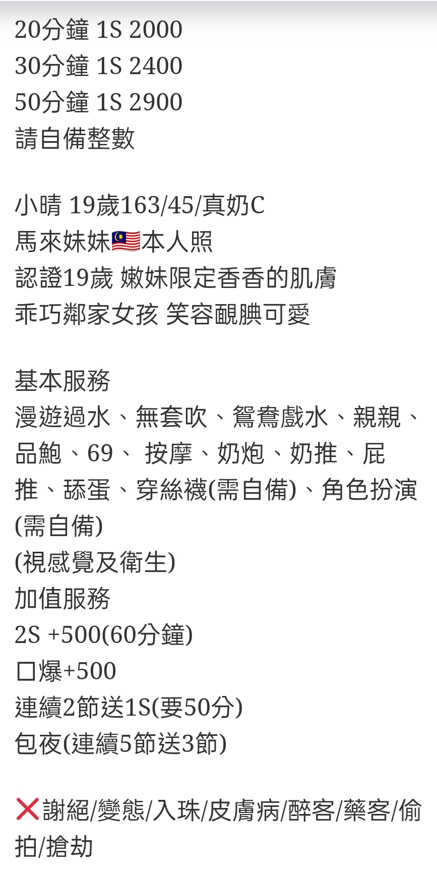 漫遊過水、無套吹、鴛鴦戲水、親親、品鮑、69、 按摩、奶炮、奶推、屁推、舔蛋、穿絲襪(需自備)、角色扮演(需自備)