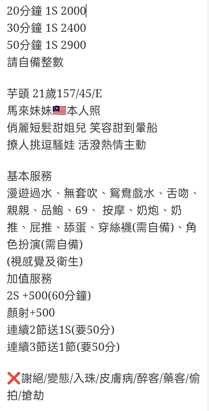 漫遊過水、無套吹、鴛鴦戲水、舌吻、親親、品鮑、69、 按摩、奶炮、奶推、屁推、舔蛋、穿絲襪(需自備)、角色扮演(需自備)