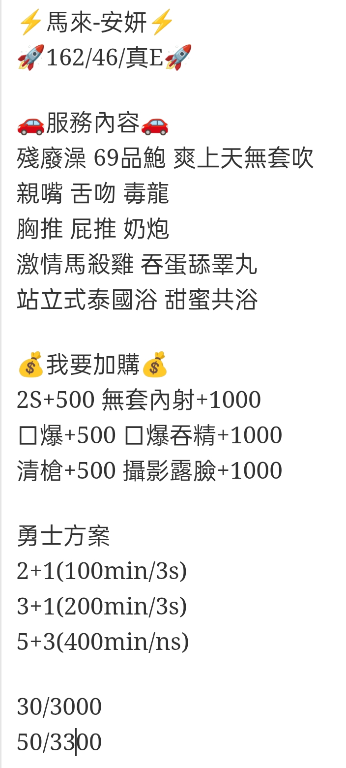 🇲🇾雲林斗六馬來妹 安妍 ⚡馬來-安妍⚡️ 🚀162/46/真E🚀 🚗服務內容🚗 殘廢澡 69品鮑 爽上天無套吹 親嘴 舌吻 毒龍 胸推 屁推 奶炮 激情馬殺雞 吞蛋舔睪丸 站立式泰國浴 甜蜜共浴 💰我要加購💰 2S+500 無套內射+1000 口爆+500 口爆吞精+1000 清槍+500 攝影露臉+1000 勇士方案 2+1(100min/3s) 3+1(200min/3s) 5+3(400min/ns) 30/3000 50/3300 相關商品 Quick View Quick View 🇹🇭雲林虎尾泰妹 魏碩芬 Quick View Quick View 🇻🇳雲林斗六越妹 禾羽 Quick View Quick View 🇹🇭雲林虎尾泰妹 楊思敏
