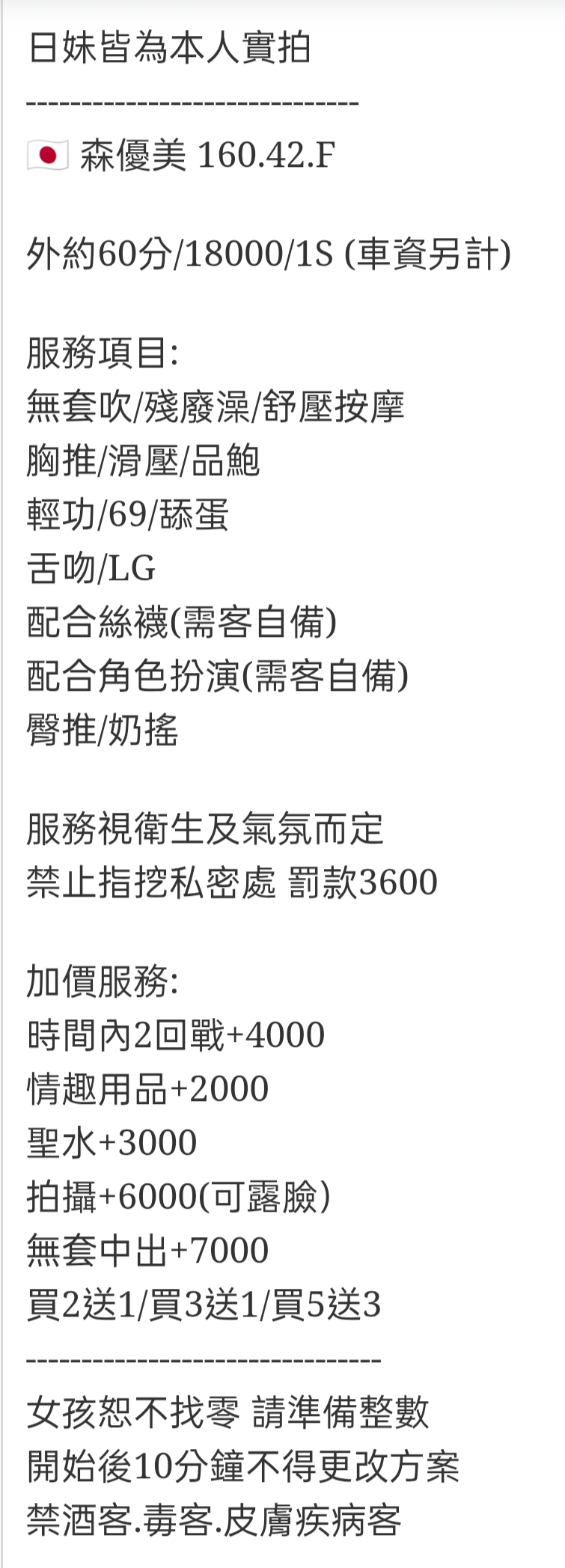 外約60分/18000/1S (車資另計)